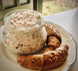 Elkészítés: 250g túrót 1 szűk kis pohár joghurttal, sóval és borssal (ízlés szerint, mehet még hozzá egy kevés zúzott fokhagyma is) elkeverek, majd apró darabokra vágva hozzáadok 1 fél kisebb kígyóuborkát, 2/3 kápia paprikát, 5-6 db piros hónapos retket és jól elkeverem a krémmel.